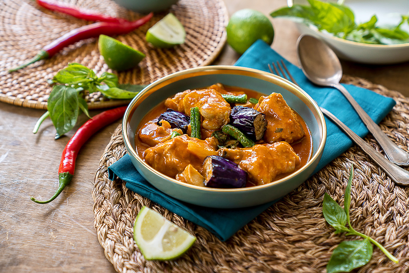 成分:雞腿肉、紅咖哩醬(檸檬香茅、大蒜、蔥、南薑、紅辣椒、葵花油、鹽、糖、麻瘋柑皮、芫荽籽)、椰漿、茄子、長豆、杏鮑菇、洋蔥、九層塔、糖、魚露(鯷魚、鹽、糖)、雞粉調味料(鹽、調味劑(L-麩酸鈉、5'次黃嘌呤核苷磷酸二鈉、5'鳥嘌呤核苷磷酸二鈉)、玉米澱粉、麥芽糊精、糖、雞肉、雞湯、雞油、醬油、水解大豆蛋白、香料、酵母抽出物、油菜籽油、白胡椒粉、酵素水解小麥蛋白、玉米油、棕櫚油) 。